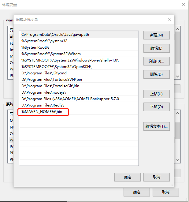 在系统环境变量中添加 M2_HOME 和 MAVEN_HOME,最后在PATH中添加Maven的bin目录: %MAVEN_HOME%\bin