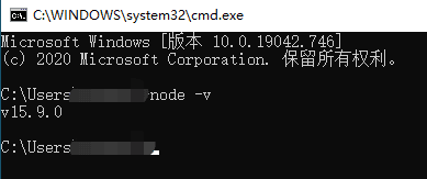 运行 -> cmd命令窗口 ,在命令行中输入 node -v ,显示node版本信息表示安装成功