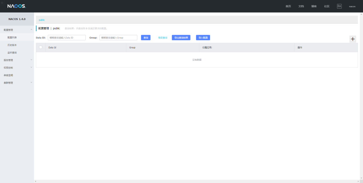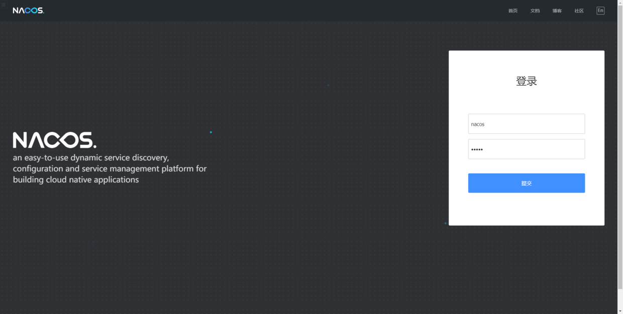 6、服务启动之后,可以访问http://ip:8848/nacos访问管理后台,默认用户名密码:nacos/nacos