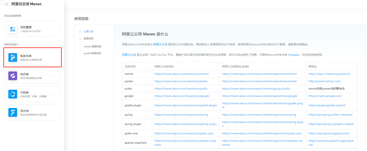 https://maven.aliyun.com/mvn/guide),如果是企业使用,这里建议申请私有仓库: