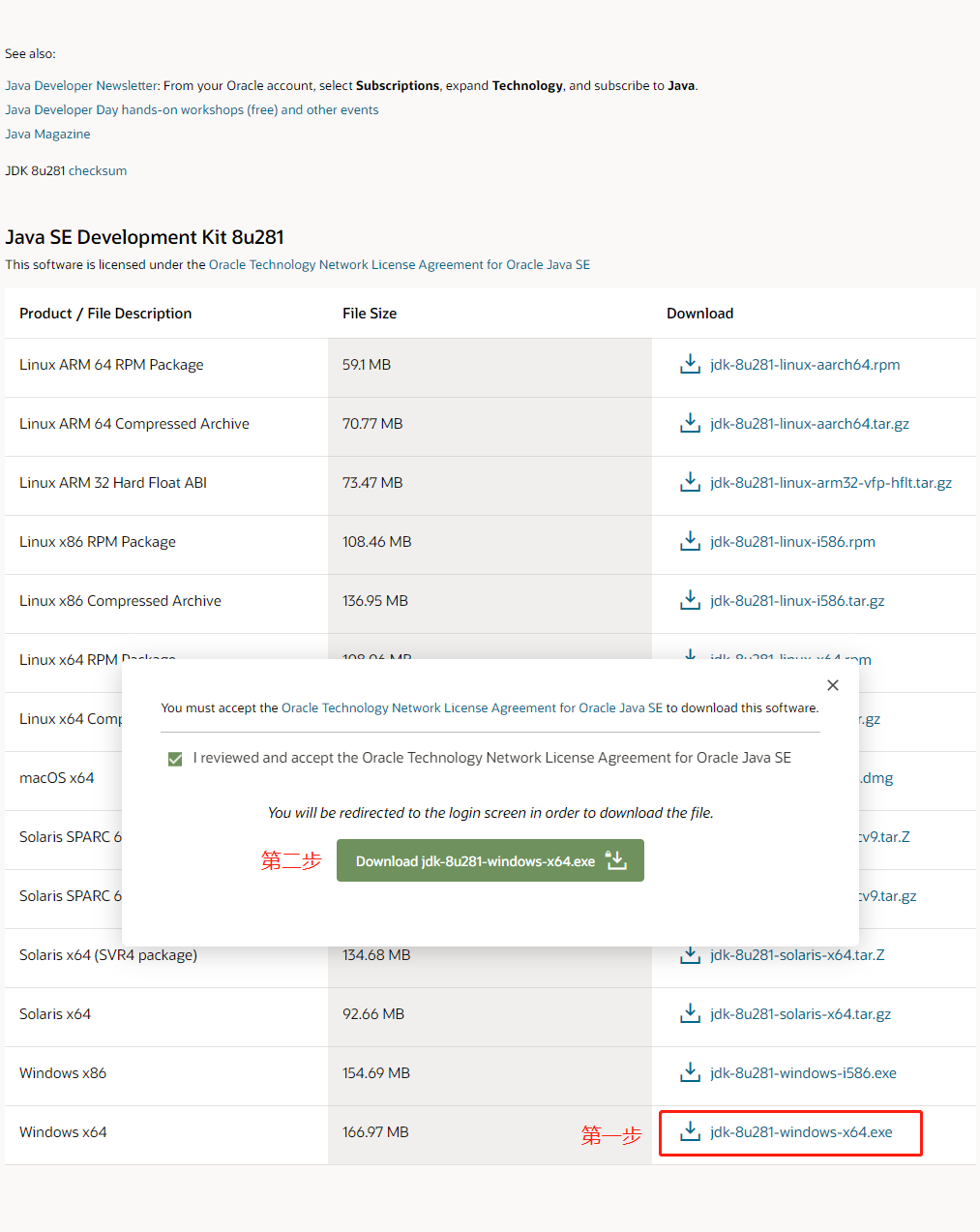 我们这里在开发过程中选择使用Oracke JDK, Oracle JDK官网下载选择页面已标注好8u211后面的版本和8u202之前的版本方便下载,下载地址 :