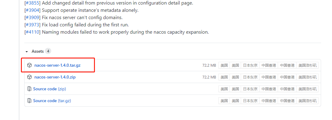 https://github.com/alibaba/nacos/releases,从里面选择需要的版本,这里选择1.4.0版本,下载地址为:https://github.com/alibaba/nacos/releases/download/1.4.0/nacos-server-1.4.0.tar.gz。