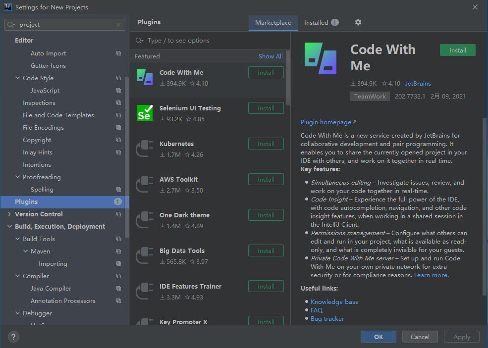 4. 通过插件中心,安装Lombok,MybatisX, Save Actions, Eclipse Code Formatter插件,后面会详细介绍几款插件的用法: