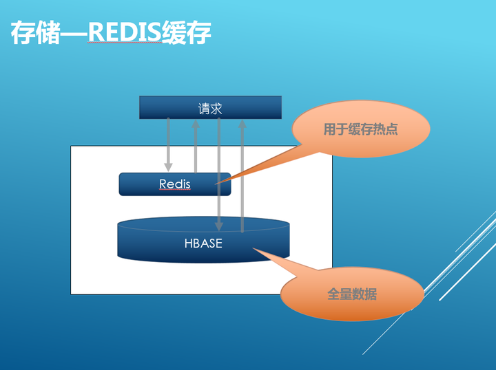 穿透策略和容灾策略,Redis只存储了热数据,当需要查询冷数据则可以自动到下一级存储如Hbase查询,避免缓存资源浪费。当Redis出现故障时或请求数异常上涨,超过整体承受能力,此时服务降级自动生效,并可配置化。