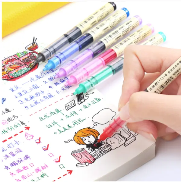 常见的有:签字笔、宝珠笔、啫喱笔、牛奶笔、滑珠笔或走珠笔,只是叫法不同,本质上都是中性笔。