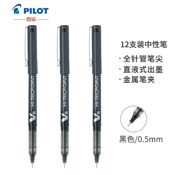 日本百乐(PILOT)P500/v5针管中性笔0.5按动签字笔0.3