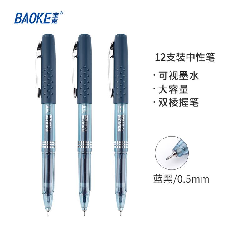 宝克(BAOKE)PC988 0.5mm蓝黑色半针管中性笔大容量