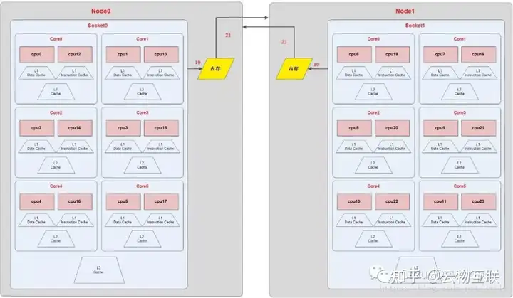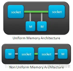 NUMA:非一致内存访问架构,内存访问时间取决于内存页面和处理器核心之间的位置。