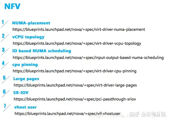 hw:huma_nodes=1,应该让 Guest 的 vCPU/Memory 从一个固定的 Host NUMA node 中获取,避免跨 NUMA node 的 Memory 访问,减少不可预知的通信延时,提高 Guest 性能。hw:huma_nodes=N,当 Guest 的 vCPU/Memory 超过了单个 Host NUMA node 占有的资源时,手动将 Guest 划分为多个 Guest NUMA node,然后再与 Host NUMA node 对应起来。这样做有助于 Guest OS 感知到 Guest NUMA 并优化应用资源调度。(e.g. 数据库应用)hw:huma_nodes=N,对于 Memory 访问延时有高要求的 Guest,即可以将 vCPU/Memory 完全放置到一个 Host NUMA node 中,也可以主动将 Guest 划分为多个 Guest NUMA node,再分配到 Host NUMA node。以此来提高总的访存带宽。(e.g. NFV/搜索引擎)如果 N == 1,表示 Guest 的 vCPU/Memory 固定从一个 Host NUMA node 获取