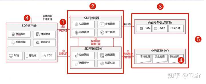 某厂商零信任安全架构图中,单包认证(SPA)就是一道防线,SDP控制器和SDP可信网关是二道防线,对用户的行为和终端的安全情况进行分析,并据此动态调整用户可访问的资源和权限。再往右,就进入企业的内部,这里是三道防线,发挥作用的是企业的身份认证和权限管理(IAM),以及企业内部各种访问控制。客户端上的防病毒软件,终端安全软件,是第四道防线,主机上的EDR也属于这道防线。最后,第五道防线在人脑之中。文|卫剑钒