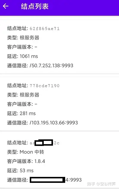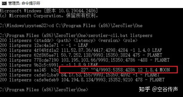 当你看到某一行 后面带有 moon 字样,就证明 已经加入到moon自建节点中 其中PLANET为官方的根服务器