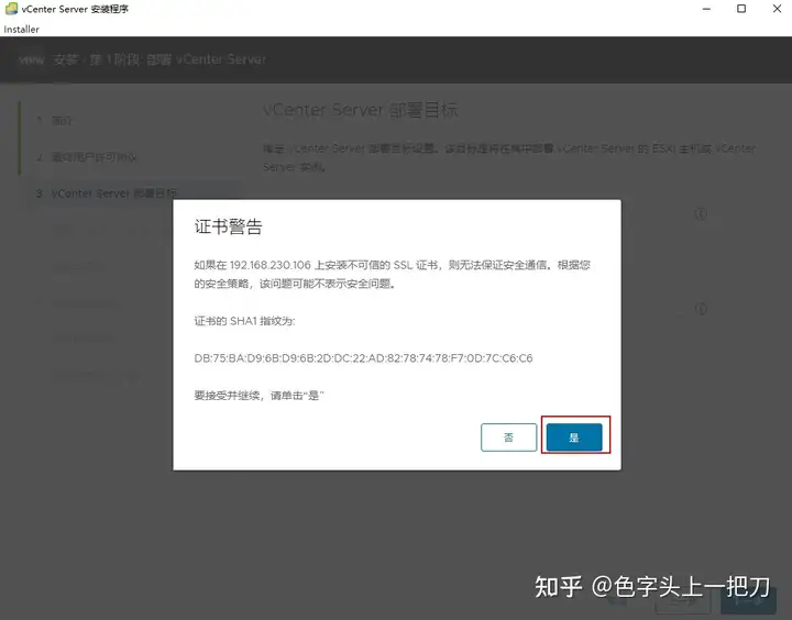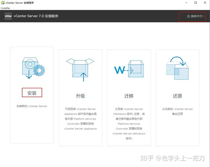 第二步:在本地,以管理员权限运行安装程序(本次测试是Windows)。注意:只是在本地运行安装程序,不会在本地笔记本安装任何资源。此安装程序目标是在安装好的vSphere平台启动一个虚拟机,用于安装vCenter。