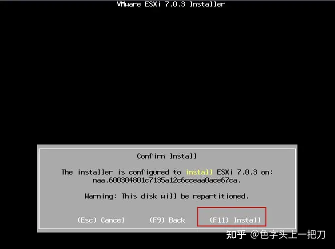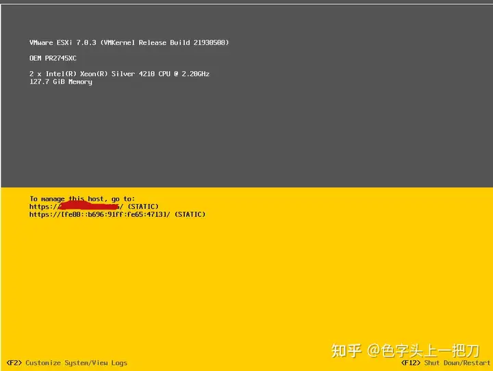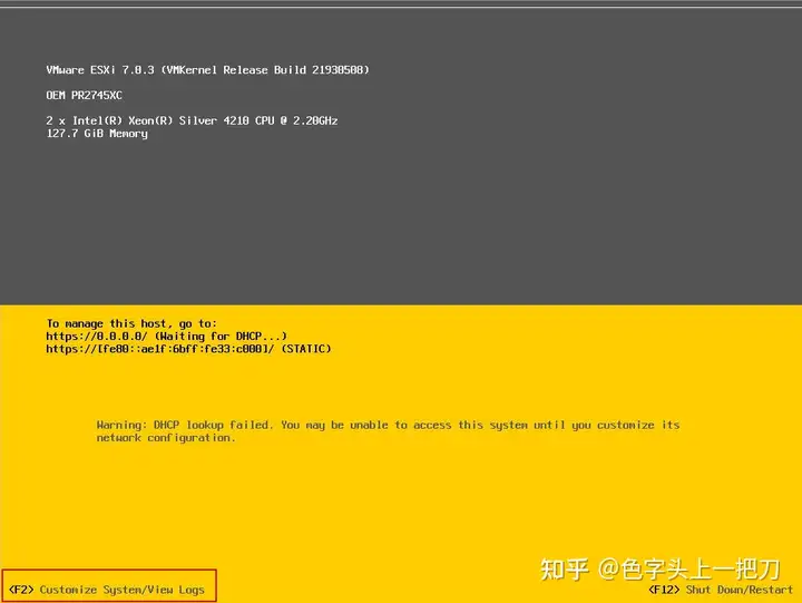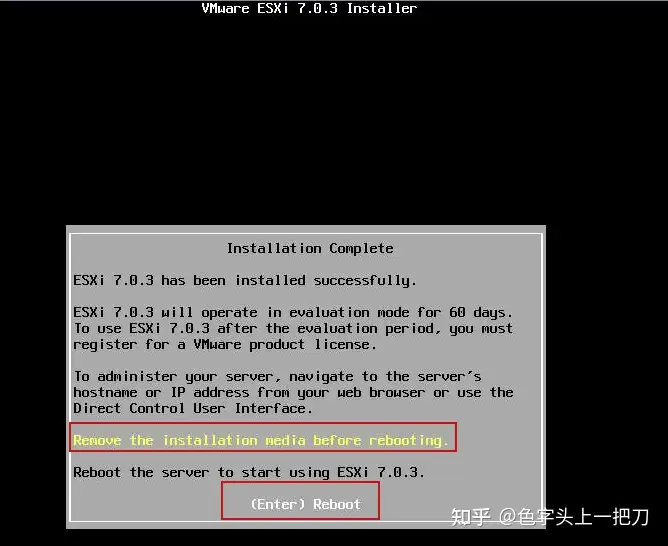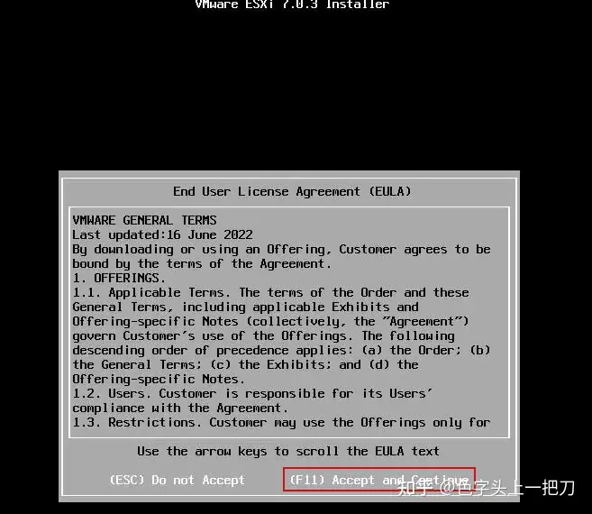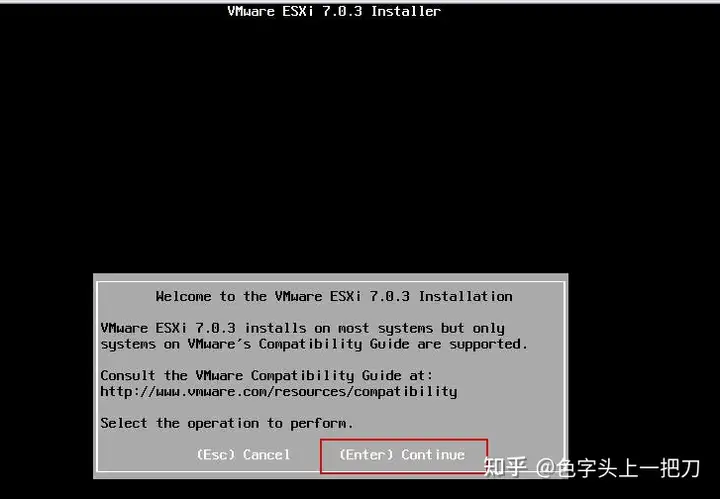 第一步:正常配置服务器启动安装vSphere流程,进入下述界面,输入“Enter”继续流程。