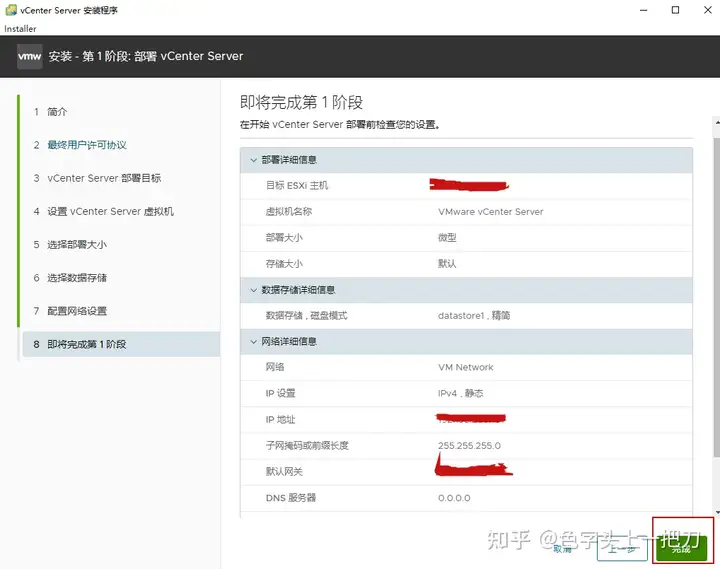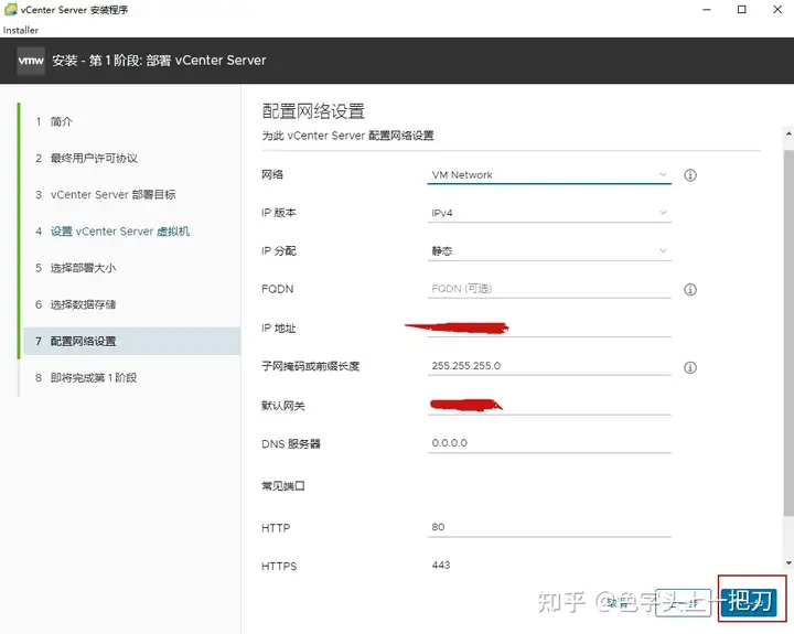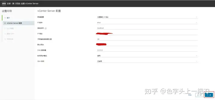 第十一步:设置部署vCenter虚拟机的IP地址等信息。点击下一步。
