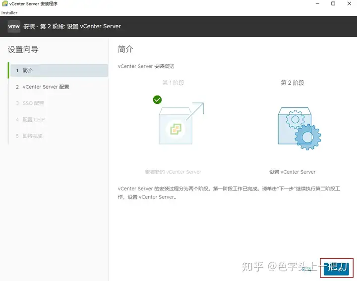 第十三步:在进行vCenter部署的第一阶段安装过程,需要等待约30分钟。