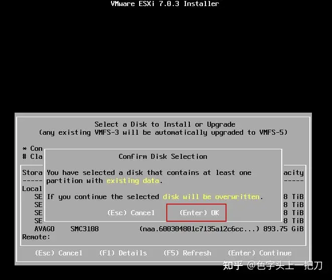 第四步:第三步选择的系统盘存在分区,此处输入“Enter”继续。如果是空盘,忽略该步。