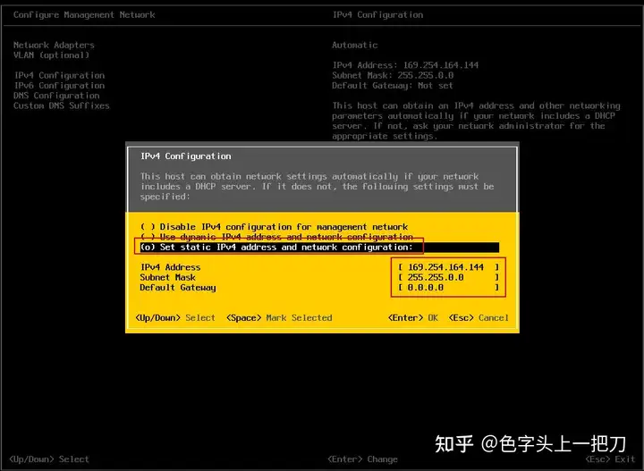 第十六步:配置所选网卡的IP地址、子网掩码、默认网关等信息。