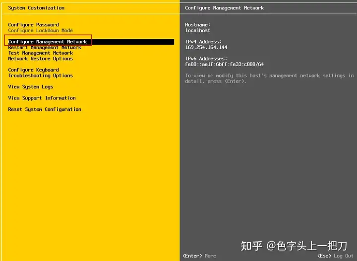 第十三步:选择“Configure Management Network”选项,输入“Enter”,配置管理网络。