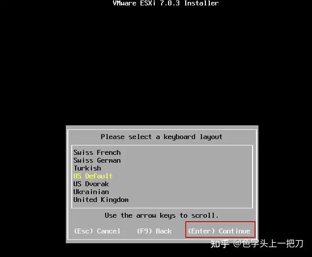 第五步:选择默认(US Default)即可,输入“Enter”继续。
