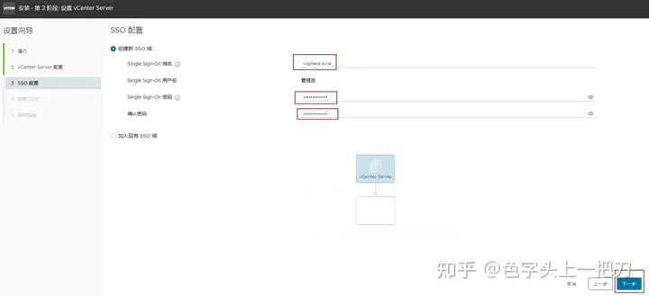 第二十步:选择新建SSO域,设置域名和登录密码。点击下一步。