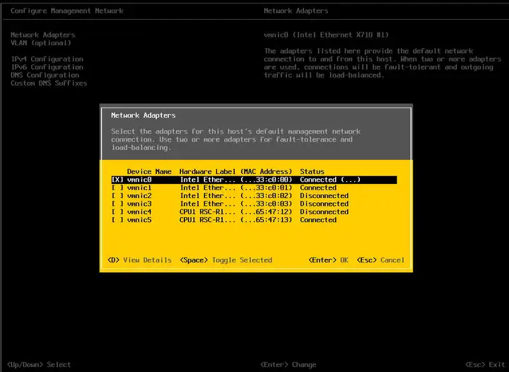第十五步:在网卡列表选择管理网网卡,注意所选网卡状态必须是connected。