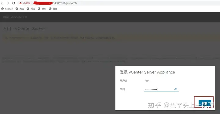 第十六步:通过浏览器访问https://部署vCenter虚拟机IP地址:5480,输入用户名和密码,进行第二阶段部署。