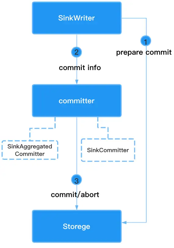 通过以上的二阶段提交过程,SeaTunnel 能够确保在数据同步过程中的一致性。SeaTunnel 实现了分布式环境下的数据操作的原子性和一致性。在正常情况下,所有参与者都成功执行了数据操作并提交数据,而在异常情况下,参与者能够回滚之前的数据操作,确保数据的一致性。这种机制使得 SeaTunnel 能够在分布式数据同步中提供可靠的数据一致性保证。其 Sink API 如下: