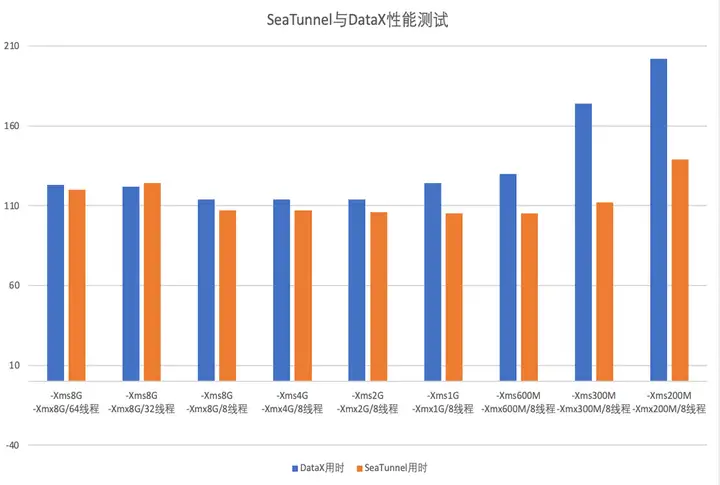 DataX 和 Flink CDC 的单机性能较好。但 Apache SeaTunnel 的单机性能比 DataX 高 40%-80% 左右。