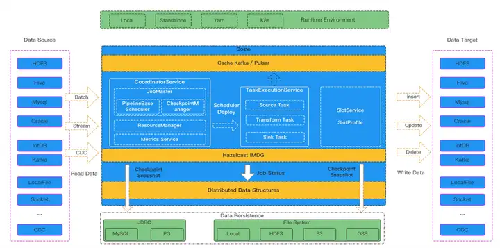Apache SeaTunnel 支持 SeaTunnel Zeta、Flink 和 Spark 三个引擎选其一作为运行时。
