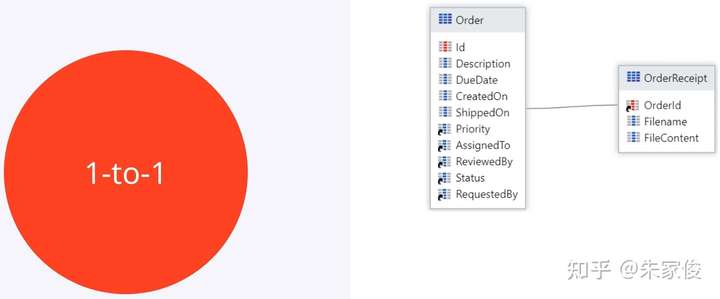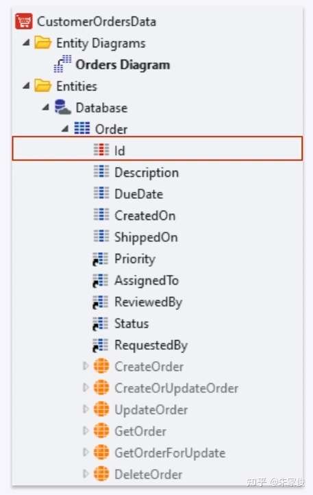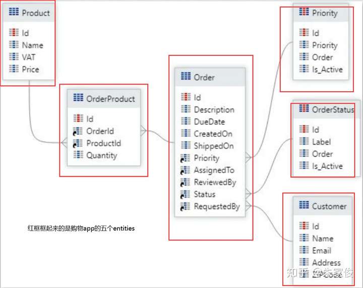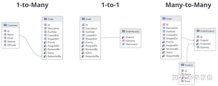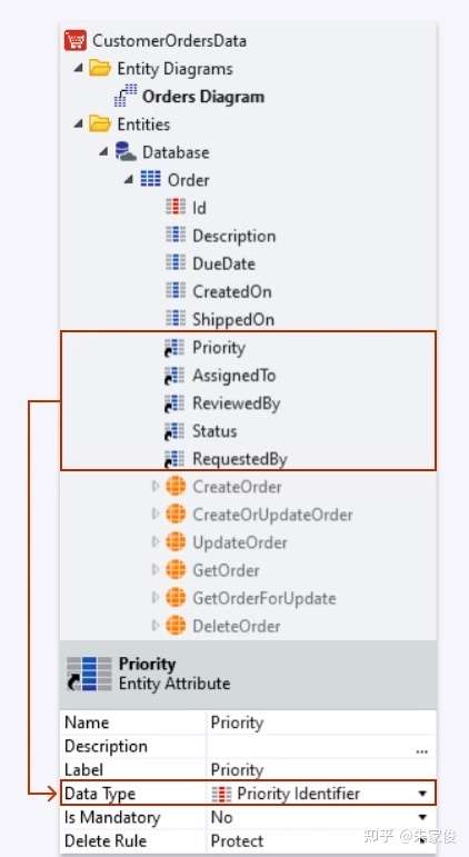 在上图这个例子中,因为业务是:一个customer可以下单多个orders,而每个order只属于一个customer。所以建模数据关系的流程是:让Order Entity里面的一个名为RequestBy的attribute的Data Type为Customer Identifier。