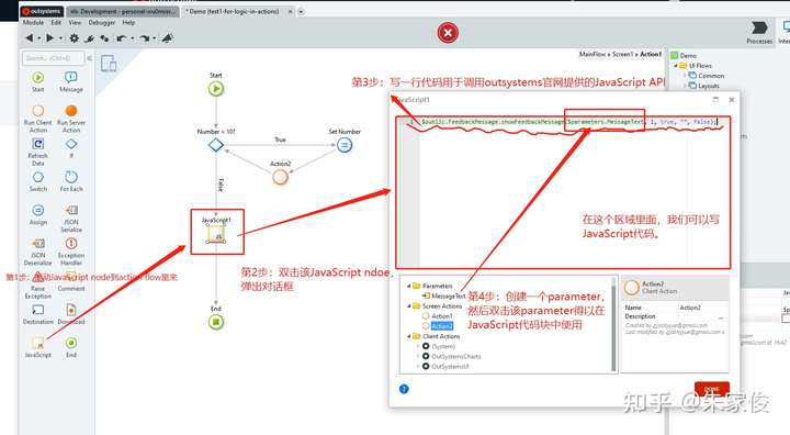 图中用了属于JavaScript API的FeedbackMessage,它的在outsystems官方documentation中可以找出: