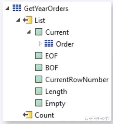 The Current匹配定义在source标签下的entities的type。而EOF和BOF是两个boolean fields(布尔值类型的字段),它们代表iterator的end和beginning。current row number从0开始,一直到list中records总数-1。另一个重要的方面是Current默认会指向list中第一个record。如果没有record,current会包含它数据类型的默认值。至于Length,这是list中所有records的总数。如果没有records匹配Aggregate中定义的规则,the empty将会为true。最后,Aggregate有Count output parameter,Count是所有匹配查询规则的records数量,而不是像List中的Length一样是所有records的总数不管是否匹配查询规则。