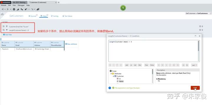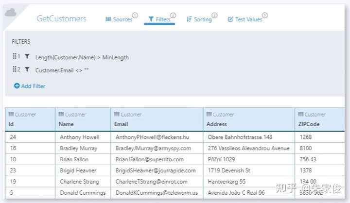 一旦我们定义了Aggregate的souces,我们接下来要做的是定义Aggregate filters。所以除了获取所有的customers,如果我们只想要获取那些特定的customers的名字——名字长度长于某个值,我们可以添加如下表达式。