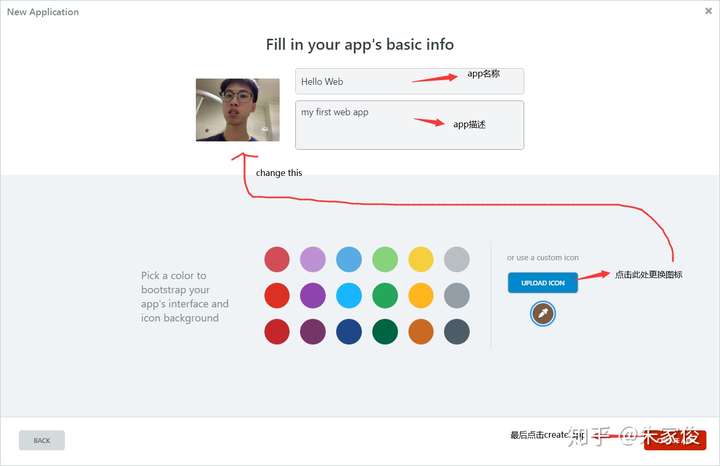 修改icon、app名称、app描述后,点击create app,当然你也可以什么也不修改,只填写app名称也可以创建。