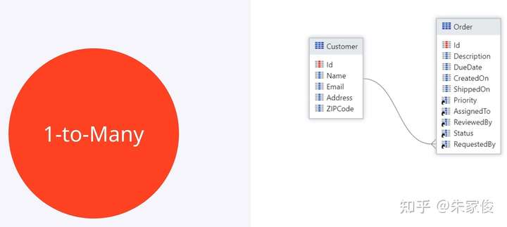 · Entity可以拥有多个reference attributes。这些reference attributes代表着database tables中的外键(foreign key)。