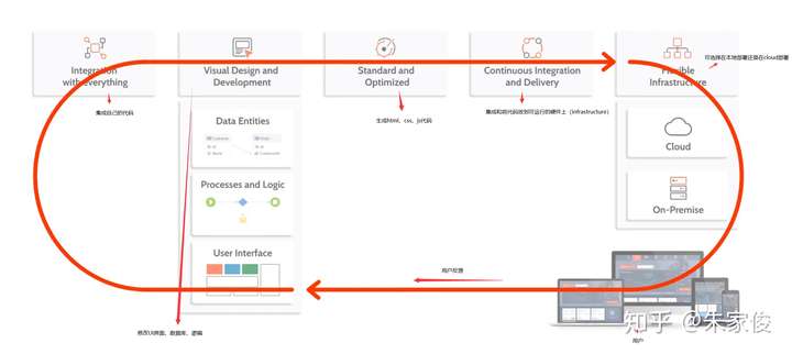 应用程序界面、逻辑、数据库的开发都是可视化的。