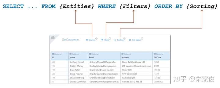 对于select部分,outsystems编译器自动地检测哪个attributes需要被获取基于application代码。比如,如果只有customer名字在application代码中被使用,outsystems编译器会通过代码分析检测到,然后Aggregate查询将会只获取该attribute。如果你改变你的app代码然后使用更多或更少的attributes,编译器会重新分析代码,然后select子句会重新计算需要查询的attribute。