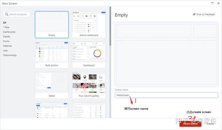 outsystems提供多种screen给你选择,但在本教程中我们选择创建Empty screen